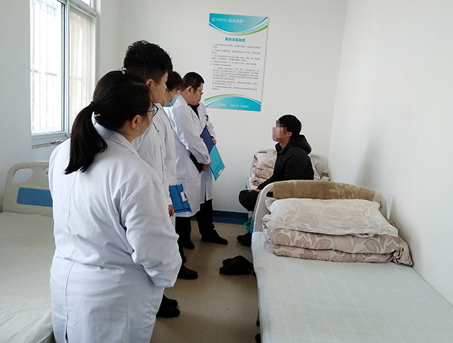 会诊首日,青岛安宁医院专家陪同王斌主任今日住院部参观和会诊。会诊的位病人就对医院赞不绝口:“来到这个医院好多了,一直想找个单间,环境好,有自由,家庭式的…”黄女士告诉王斌主任。经过多方了解,王斌主任对青岛安宁医院的诊疗流程、病房规范等各方面表示了肯定,“我听到好几个病人都在夸你们,感觉各方面都不错,很正规。”(青岛安宁医院)